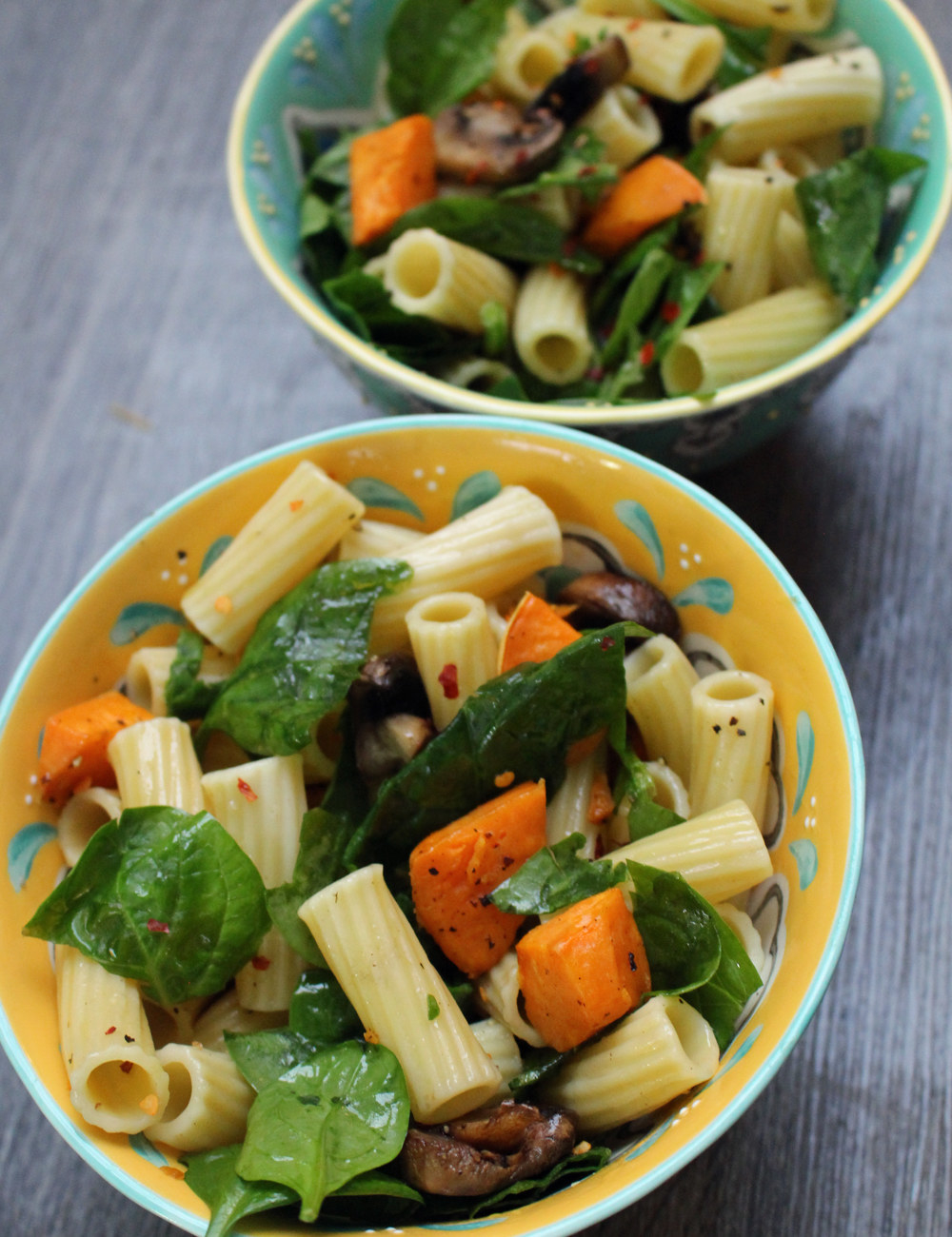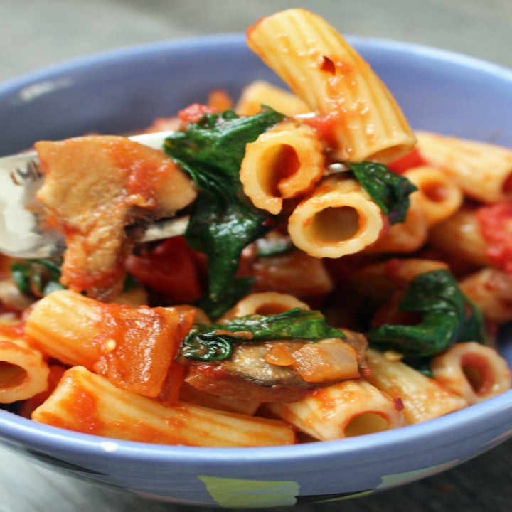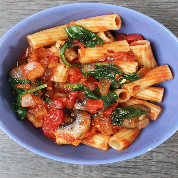 Dinner: Pasta in Tomato Sauce With Spinach & Mushrooms