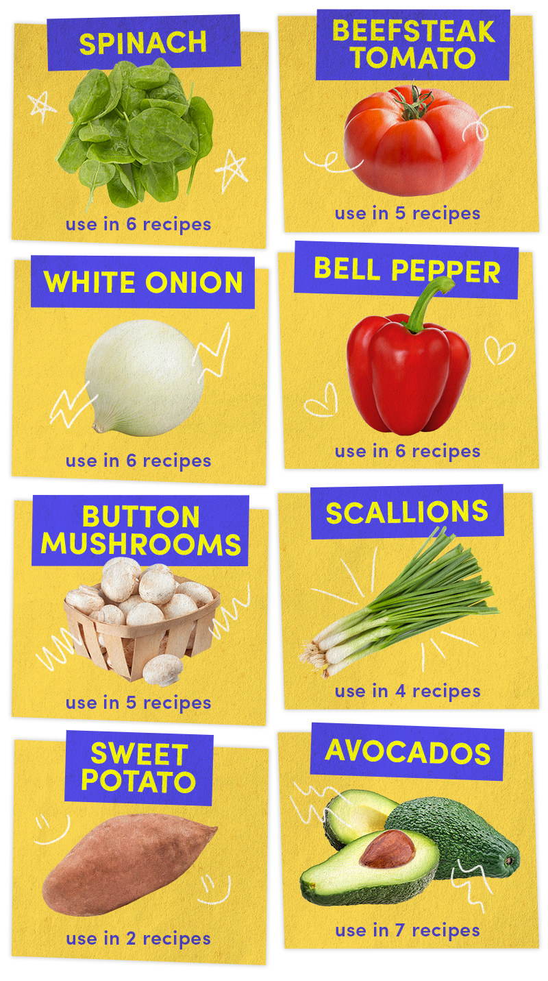 Rationing my produce to last me the whole week was the most difficult part of planning, so here's an easy cheat sheet for you to rely on:
