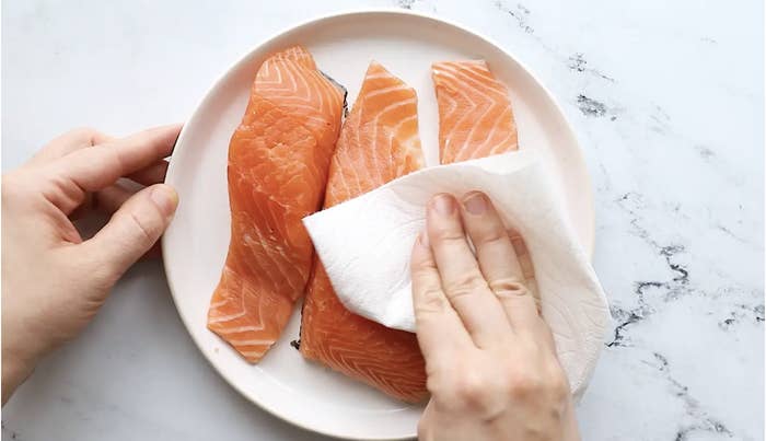For the best sear, dry meat off with a paper towel first.