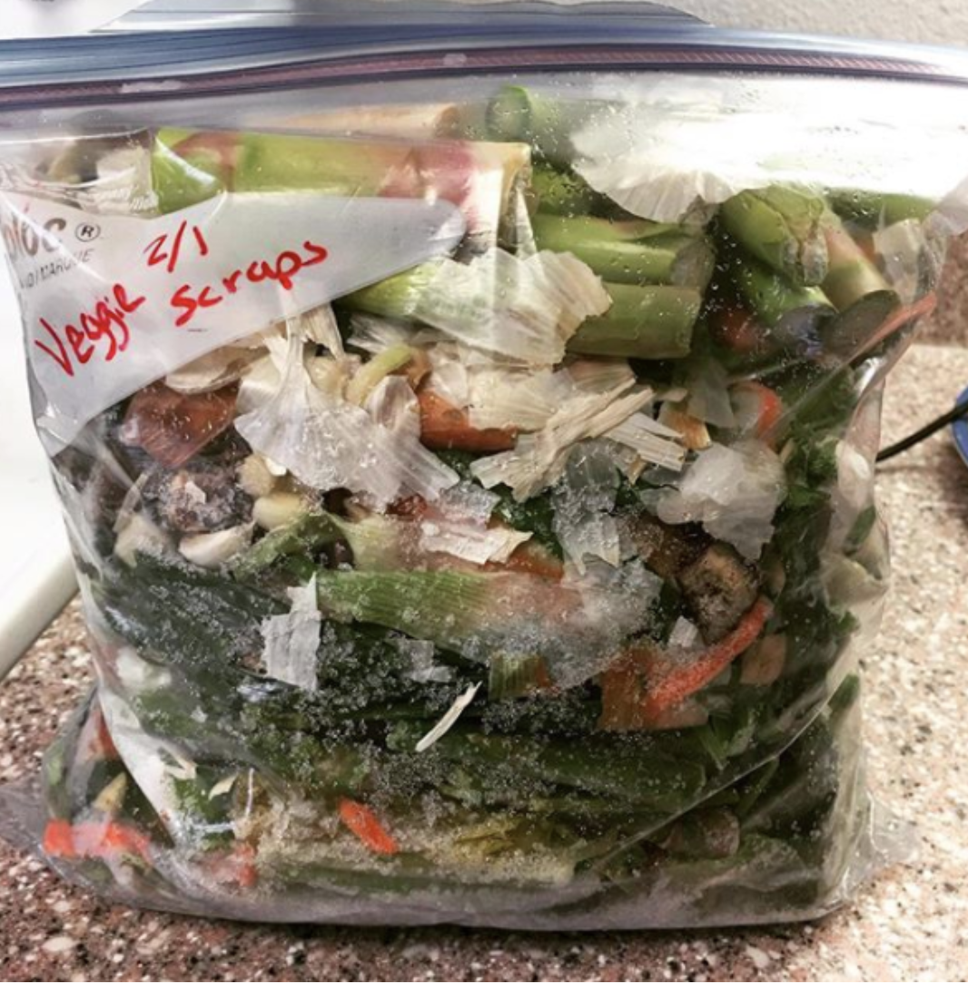 Save bones or veggie scraps to make broth or stock.