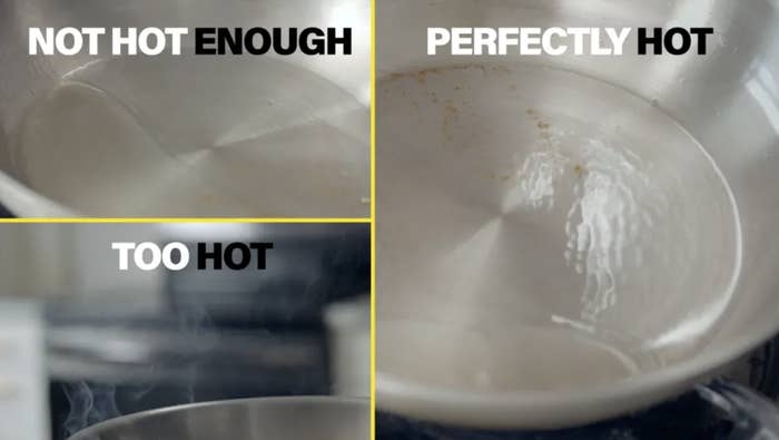 Don't add ingredients to a pan until the oil is hot enough.