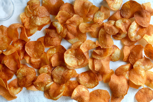 ...then fry them up to become lots of potato CHIPS.