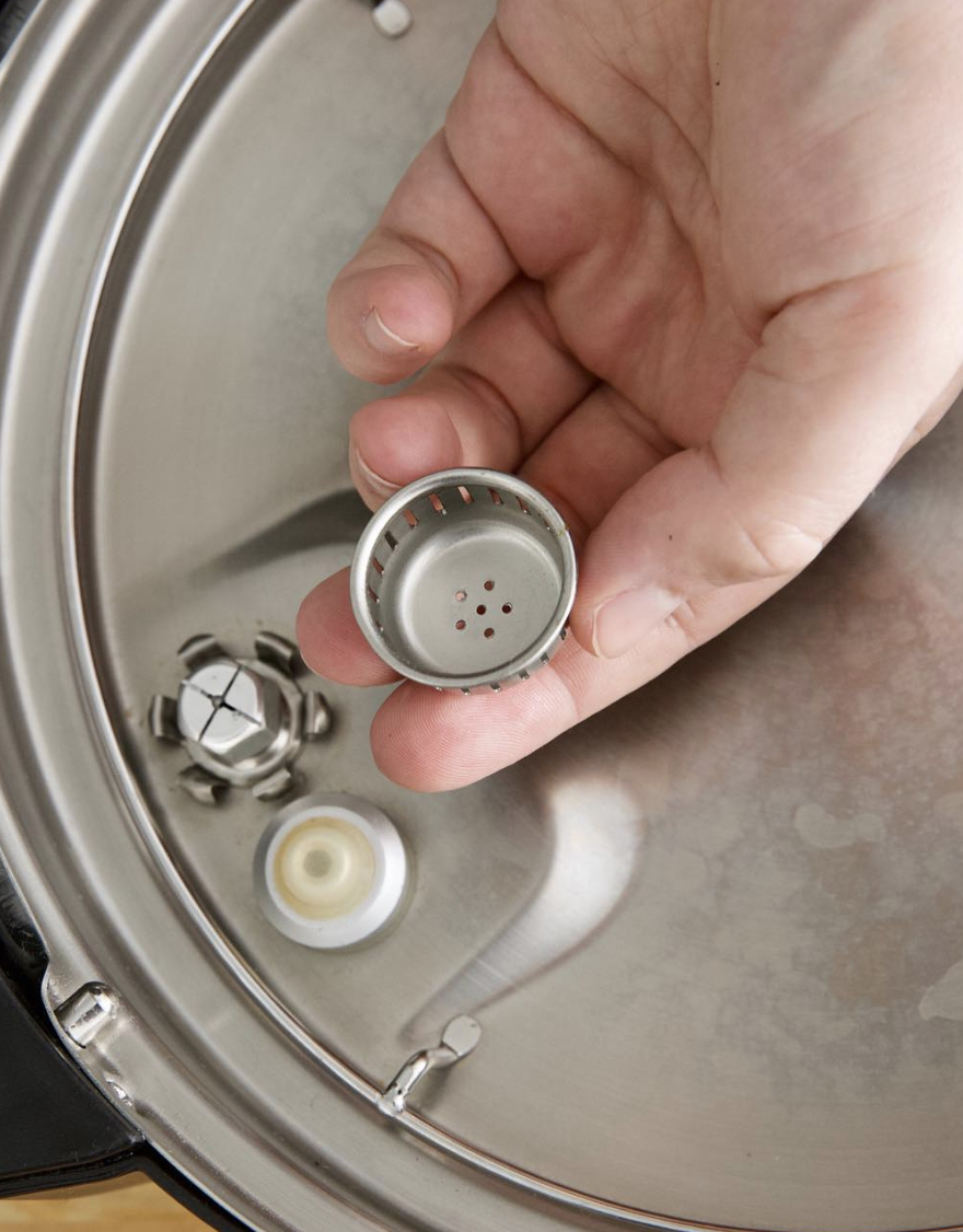 17. To release steam without burning your hands or having to fiddle with gloves, wedge the back of a wooden spoon underneath the valve.